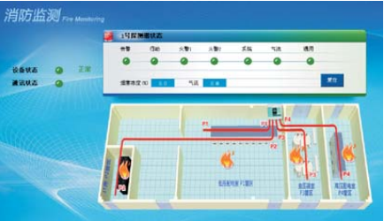 消防系統(tǒng)檢測主要通過采集消防控制器的報警信號或煙感探測器、溫感探測器的報警信號,實時監(jiān)測火災(zāi)狀態(tài)。當有火警發(fā)生,監(jiān)視系統(tǒng)以直觀的畫面顯示報警信息并作報警通知,采取相應(yīng)控制措施如打開機房門,并啟停其他相關(guān)設(shè)備。