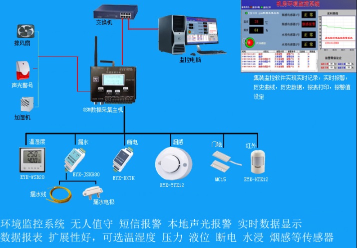 籠統(tǒng)的說,機(jī)房動(dòng)環(huán)監(jiān)控重要包括機(jī)房環(huán)境監(jiān)控以及動(dòng)力設(shè)備監(jiān)控兩大部分。其中,機(jī)房環(huán)境監(jiān)控就是對(duì)機(jī)房?jī)?nèi)環(huán)境(溫濕度、煙霧濃度、漏水等)的實(shí)時(shí)監(jiān)控以及異常告警。 溫濕度監(jiān)控 機(jī)房?jī)?nèi)安裝有溫濕度傳感器,用來(lái)采集機(jī)房?jī)?nèi)溫度和濕度數(shù)據(jù),機(jī)房環(huán)境監(jiān)控系統(tǒng)以直觀的畫面實(shí)時(shí)記錄和顯示機(jī)房各區(qū)域的溫度/濕度數(shù)據(jù)和變化曲線,以及臨界警告和越界報(bào)警信息處理。 漏水漏液監(jiān)控 機(jī)房漏水漏液監(jiān)控是對(duì)機(jī)房空調(diào)或者窗戶等處可能漏水漏液的地方進(jìn)行監(jiān)控,它通過采集測(cè)漏主機(jī)的報(bào)警信號(hào)監(jiān)測(cè)任何漏水探頭上的漏水情況。通常漏水檢測(cè)系統(tǒng)分定位和不定位兩種。定位式,就是指能夠準(zhǔn)確報(bào)告具體漏水地點(diǎn)的檢測(cè)系統(tǒng)。不定位系統(tǒng)則是只能報(bào)告發(fā)現(xiàn)漏水,但不能指明位置。但是,無(wú)論哪一種檢測(cè)系統(tǒng),一旦發(fā)生任何異常都會(huì)立刻聯(lián)動(dòng)報(bào)警,同時(shí)將報(bào)警信息通過短信、郵件、電話等方式通知相關(guān)人員,對(duì)該情況進(jìn)行緊急處理。 煙霧濃度監(jiān)控 機(jī)房?jī)?nèi)安裝有感煙傳感器,同時(shí)集中監(jiān)控管理平臺(tái)軟件中煙霧濃度監(jiān)測(cè)模塊,該軟件模塊可監(jiān)測(cè)煙霧探測(cè)器的輸出狀態(tài)變化量。當(dāng)檢測(cè)到機(jī)房?jī)?nèi)部煙霧濃度超標(biāo)時(shí),煙霧探測(cè)器本身發(fā)生光電信號(hào),通過煙霧探測(cè)器的干接點(diǎn)輸出接口將報(bào)警信號(hào)發(fā)送至現(xiàn)場(chǎng)監(jiān)控單元通過集中監(jiān)控管理平臺(tái)軟件實(shí)施即時(shí)監(jiān)控,同時(shí)向后臺(tái)服務(wù)發(fā)送信息,并啟動(dòng)警鈴、廣播喇叭等相關(guān)設(shè)備。 門禁監(jiān)控 利用電子、機(jī)械、光學(xué)、計(jì)算機(jī)技術(shù)、通訊技術(shù)、生物技術(shù)等諸多新技術(shù)集合而成,由門禁監(jiān)控器、門禁卡、電控鎖、網(wǎng)絡(luò)擴(kuò)展器、讀卡器、卡片、門禁管理軟件、管理計(jì)算機(jī)等構(gòu)成,擁有通道進(jìn)出權(quán)限的管理、實(shí)時(shí)監(jiān)控功能、異常報(bào)警功能、防尾隨功能、消防報(bào)警監(jiān)控聯(lián)動(dòng)功能、網(wǎng)絡(luò)設(shè)置管理監(jiān)控功能等。實(shí)現(xiàn)了對(duì)機(jī)房的出入控制、進(jìn)出信息登記、安保防盜、報(bào)警。 空氣質(zhì)量監(jiān)控 空氣質(zhì)量檢測(cè),指的是對(duì)空氣質(zhì)量的好壞進(jìn)行檢測(cè)。機(jī)房?jī)?nèi)的空氣質(zhì)量影響設(shè)備使用壽命以及機(jī)房?jī)?nèi)人員的健康,研究表明當(dāng)空氣出現(xiàn)污染時(shí),會(huì)影響人的心肺功能,甚至?xí)鹌渌膊?。因此,機(jī)房?jī)?nèi)空氣質(zhì)量監(jiān)控也是機(jī)房環(huán)境監(jiān)控系統(tǒng)的不可缺少的一部分,當(dāng)空氣中的氣體指標(biāo)超標(biāo)時(shí),可聯(lián)動(dòng)新風(fēng)系統(tǒng)以及空調(diào)進(jìn)行換氣,換氣后調(diào)節(jié)機(jī)房溫濕度以及減少粉塵,使機(jī)房?jī)?nèi)空氣質(zhì)量控制在正常范圍內(nèi)。 紅外入侵監(jiān)控 紅外入侵系統(tǒng)可以在機(jī)房無(wú)人值守的情況下實(shí)時(shí)監(jiān)控人員的進(jìn)出情況,對(duì)于非法闖入的人員,驅(qū)動(dòng)聲光報(bào)警器發(fā)出聲、光報(bào)警,并電話通知相關(guān)人員及時(shí)處理,實(shí)現(xiàn)機(jī)房全天候24小時(shí)無(wú)人值守。同時(shí)可以設(shè)置分時(shí)段報(bào)警,避免對(duì)正常進(jìn)出的工作人員誤報(bào),減少工作量。 空調(diào)設(shè)備監(jiān)控 機(jī)房?jī)?nèi)采用精密空調(diào)進(jìn)行制冷,實(shí)時(shí)監(jiān)測(cè)精密空調(diào)的回風(fēng)溫度、濕度、冷卻水進(jìn)出溫度、流量及冷凍機(jī)、冷卻水泵工作等參數(shù)。其監(jiān)測(cè)工作狀態(tài)包括壓縮機(jī)狀態(tài)、加濕器狀態(tài)、風(fēng)機(jī)狀態(tài)、抽濕器狀態(tài)等工作狀態(tài),同時(shí)可實(shí)時(shí)顯示和記錄各種參數(shù)的變化曲線,并對(duì)各種異常進(jìn)行報(bào)警,以此控制空調(diào)的啟停,調(diào)節(jié)溫度以及濕度。 圖像視頻監(jiān)控 圖像視頻監(jiān)控系統(tǒng)從網(wǎng)絡(luò)結(jié)構(gòu)上劃分,可以分為前端設(shè)備、通訊網(wǎng)絡(luò)和監(jiān)控管理平臺(tái)三部分,采用視頻組態(tài)的概念,將各通道的圖像以控件組態(tài)的方式隨意插入某個(gè)界面,對(duì)于大型的監(jiān)控系統(tǒng)而言,以電子地圖的方式來(lái)集中管理各個(gè)場(chǎng)地的數(shù)據(jù)和圖像的界面,十分方便。由于將機(jī)房監(jiān)控系統(tǒng)和閉路監(jiān)控合二為一,因而可以隨意實(shí)現(xiàn)動(dòng)力環(huán)境與圖像的聯(lián)動(dòng)控制,一旦有異常事件發(fā)生,機(jī)房監(jiān)控系統(tǒng)自動(dòng)彈出現(xiàn)場(chǎng)圖像畫面,即時(shí)錄像并作報(bào)警提示和處理。 防雷系統(tǒng)監(jiān)控 防雷系統(tǒng)是弱電精密設(shè)備及機(jī)房