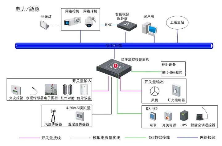 動環(huán)監(jiān)控系統(tǒng)由動力監(jiān)控系統(tǒng)、環(huán)境監(jiān)控系統(tǒng)、安防系統(tǒng)、消防系統(tǒng)組成。集中了實時監(jiān)控、監(jiān)視及管理一體。以直觀、便捷、信息內(nèi)容豐富而廣泛應(yīng)用于企業(yè)、事業(yè)單位、鐵路、倉庫、金融、基站、交通、電信等場所和領(lǐng)域。 動環(huán)監(jiān)控系統(tǒng)是一個復(fù)雜而完整的監(jiān)控系統(tǒng),其流程繁瑣,細(xì)講起來相當(dāng)復(fù)雜,涉及內(nèi)容也是很廣泛的。但是,無論是哪一類的動環(huán)監(jiān)控系統(tǒng),其框架都是以前端設(shè)備—傳輸設(shè)備—終端設(shè)備—存儲、控制、顯示—管理的形式體現(xiàn)。 1、前端設(shè)備:前端設(shè)備是處理和混合多個信號源的設(shè)備,可以說是動環(huán)系統(tǒng)工作的開始,比如采集視頻的設(shè)備,如攝像頭、鏡頭等,由用戶安裝在機房等需要監(jiān)控的場所,其設(shè)備包括智能網(wǎng)絡(luò)攝像機、無線報警觸發(fā)器等,用于采集報警信息和監(jiān)控畫面。 2、傳輸設(shè)備:是連接交換機與交換機之間的通信線路,互連設(shè)備包括路由器、交換機、集線器、中繼器、網(wǎng)橋。常用的傳輸媒介包括架空明線、電纜、光纜和無線電波、電磁波、紅外線等。傳輸設(shè)備把機房內(nèi)采集到的信息傳輸?shù)奖O(jiān)控主機,實現(xiàn)長途通信、遠距離傳輸。為了提高傳輸效率,復(fù)用是傳輸設(shè)備的另一項重要功能,復(fù)用技術(shù)包括頻分復(fù)用、時分復(fù)用、波分復(fù)用和碼分復(fù)用等技術(shù)。 3、終端設(shè)備:終端,即動環(huán)監(jiān)控系統(tǒng)的顯示終端,是動環(huán)系統(tǒng)系統(tǒng)的輸入、輸出設(shè)備的組合。終端設(shè)備通常設(shè)置在能利用通信設(shè)施與遠處計算機聯(lián)接工作的方便場所,它主要由通信接口控制裝置與專用或選定的輸入輸出裝置組合而成。同時,動環(huán)監(jiān)控系統(tǒng)的遠程終端也屬于終端設(shè)備。 4、存儲、控制、顯示:通過采集、傳輸、終端等設(shè)備的處理,將我們需要的信息實時、直觀、真實的顯示到顯示器設(shè)備中,各個測點的位置在實時顯示的同時, 也可以實現(xiàn)歷史數(shù)據(jù)查詢功能,實現(xiàn)了對整個系統(tǒng)的統(tǒng)一管理、數(shù)據(jù)儲存、顯示等功能。 5、管理:把機房內(nèi)的各個情況、監(jiān)控畫面、信息集中顯示到一個平臺上,實現(xiàn)機房維運人員對機房內(nèi)環(huán)境以及動力設(shè)備的實時監(jiān)測,一旦發(fā)生任何異常情況,能夠及時對異常情況做出決策、做出正確的處理,及時避免機房遭受損害,節(jié)省維運時間以及減少管理難度。 機房動環(huán)監(jiān)控系統(tǒng)在保證對動力、環(huán)境、安防設(shè)備信息狀態(tài)集中監(jiān)控,實現(xiàn)及時發(fā)現(xiàn)問題,準(zhǔn)確定位故障功能的同時,還需要對數(shù)據(jù)中心各專業(yè)設(shè)備和系統(tǒng)進行集中監(jiān)控,可大幅度降低運維難度,提前預(yù)警及排除潛在風(fēng)險的設(shè)備故障,有效降低機房事故的發(fā)生,大大減少維修的時間和費用,降低運營成本。
