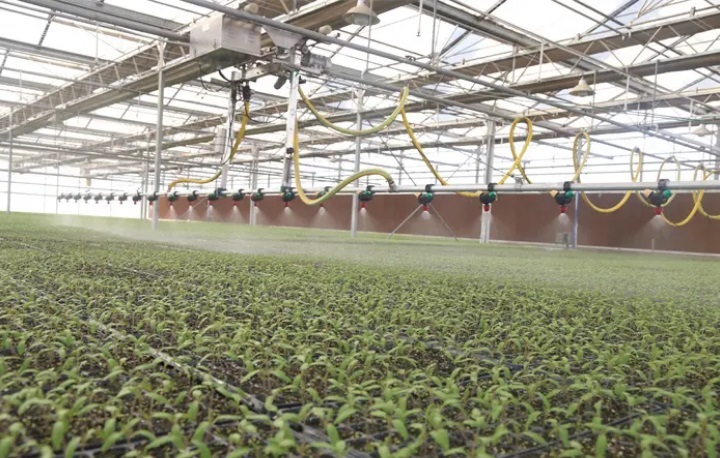 三、通風系統(tǒng) 通風系統(tǒng)通常分為兩種。一種是頂部開窗通風系統(tǒng),另一種是側(cè)開窗通風系統(tǒng)。通風系統(tǒng)是溫室控制系統(tǒng)的重要組成部分,起作用在于能夠有效的保障溫室內(nèi)部的空氣流動,使溫室內(nèi)部的二氧化碳分布更加均勻。 1、頂部開窗通風系統(tǒng):頂部開窗是在玻璃溫室的人字梁位置安裝了U型齒條,電機通過轉(zhuǎn)動連接傳動軸工作,傳動軸帶動U型齒條緩慢的將窗戶推開和關(guān)閉,保證屋面全開通風、除濕、降溫效果好。 2、側(cè)開窗通風系統(tǒng):側(cè)開窗通風系統(tǒng)是目前常見的一種開窗機構(gòu),附屬配件隨機構(gòu)整體的不同而有差異。推拉側(cè)開窗機構(gòu)性能穩(wěn)定、運行可靠安全、承載力強、傳動效率高、運轉(zhuǎn)精準、便于實現(xiàn)自動控制。