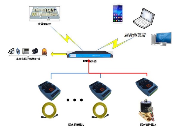 【應用領域】 1)機房漏水檢測:可檢測機房地板、天花板、墻體、門窗、精密空調、普通空調、用水管道、消防管道、任意設備漏液等存在的漏水隱患。 2)智能樓宇漏水檢測:漏水檢測系統(tǒng)是樓宇自控系統(tǒng)的重要子系統(tǒng)之一,可檢測樓宇內管道(供暖供冷輸水管、生活用水、消防用水管道等)、樓頂、中央空調、地下車庫等地的漏水隱患。 3)倉庫漏水檢測:倉庫區(qū)域內存放著大量的貨物,為確保貨物正常儲存,通過漏水檢測系統(tǒng)可避免雨水或其他液體的浸泡。 4)檔案室漏水檢測:可檢測檔案室內天花板、墻體、地暖、門窗、用水管道的漏水隱患,從而取保檔案室內檔案、文件的干燥,延長保存期限。 5)電站漏水檢測:電力配電室嚴禁與液體接觸,為維護電力的正常配送電運行,在配電室需加裝水浸傳感器,預防水泄漏帶來的嚴重危害。