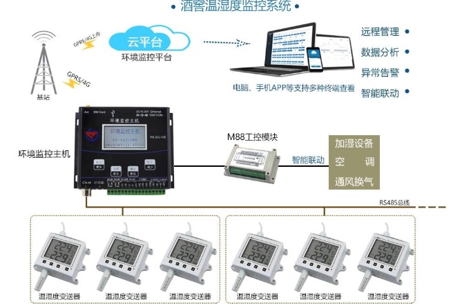 二、酒庫溫濕度監(jiān)控系統(tǒng)的優(yōu)點 (1)軟件登陸界面為窗口化,簡易操作,明了讀取。 (2)具有自動控制和人工控制外部設備啟動與關閉等多種功能。 (3)可通過內(nèi)部區(qū)域網(wǎng)查看每個酒庫的所有采集數(shù)據(jù)。 (4)溫濕度監(jiān)控系統(tǒng)通常留有系統(tǒng)擴展功能,簡易、方便擴展。 (5)酒庫溫濕度監(jiān)控系統(tǒng)占地面積小,方便安裝。 (6)使用靈活,在信號覆蓋區(qū)域內(nèi)任何一個位置的設備都可以接入網(wǎng)絡并進行數(shù)據(jù)傳輸。