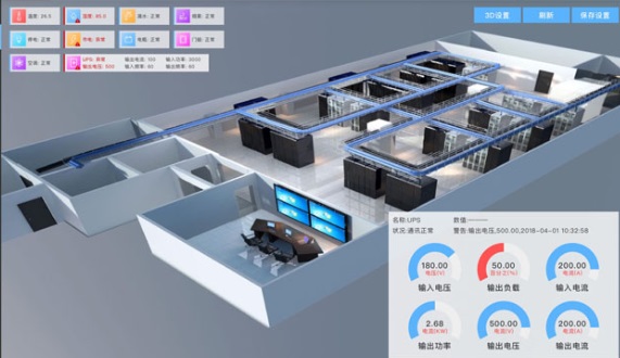 (2)動(dòng)環(huán)監(jiān)控可視化:包括動(dòng)力設(shè)備、機(jī)房環(huán)境、門禁、消防等監(jiān)控的可視化。
