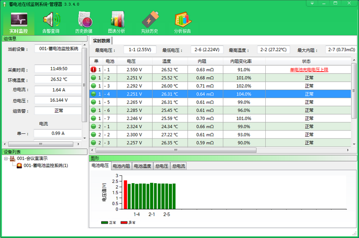 在現(xiàn)代社會(huì),蓄電池作為重要的電力儲(chǔ)存設(shè)備,被廣泛應(yīng)用于各種領(lǐng)域,如通信、電力、交通、軍事等。為了確保蓄電池的安全性和可靠性,蓄電池在線監(jiān)測系統(tǒng)應(yīng)運(yùn)而生。下面我們將詳細(xì)介紹這一系統(tǒng)的功能、優(yōu)勢以及應(yīng)用場景。 一、什么是蓄電池在線監(jiān)測系統(tǒng)? 二、系統(tǒng)的主要功能 數(shù)據(jù)分析:通過對歷史數(shù)據(jù)的分析,系統(tǒng)可以預(yù)測電池的使用壽命及故障風(fēng)險(xiǎn),幫助用戶制定合理的維護(hù)計(jì)劃。 報(bào)警功能當(dāng)監(jiān)到異常情況(如過充過放過溫等)時(shí),系統(tǒng)會(huì)立即發(fā)出警報(bào),提示用戶采取相應(yīng)措施。 遠(yuǎn)程管理:用戶可以通過互聯(lián)網(wǎng)遠(yuǎn)程查看蓄池的狀態(tài),實(shí)現(xiàn)對蓄電池的實(shí)時(shí)管理。 報(bào)告生成:系統(tǒng)能夠自動(dòng)生成監(jiān)測報(bào)告,方便用戶進(jìn)行記錄和分析。