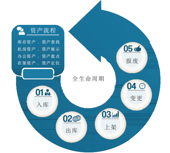 資產(chǎn)管理系統(tǒng),以數(shù)據(jù)中心資產(chǎn)生命全周期為管理基礎,深度切合實際管控需求,實現(xiàn)資產(chǎn)從采購、出入庫、上下架、變更、處置、調撥等環(huán)節(jié)的全生命周期管控。同時通過獨特的資產(chǎn)U位精準級定位、可視化操作、移動管理、資產(chǎn)維保管理等功能運用,實現(xiàn)數(shù)據(jù)中心資產(chǎn)運維管理向規(guī)范化、智能化、精細化、可視化的全面發(fā)展。